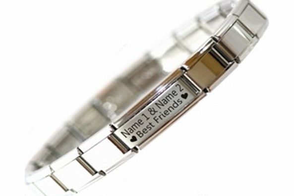 JSC Jewellery Personalised Best Friends Stainless Steel Friendship Charm Bracelet - please add names a gift message at checkout - Ready to wear one size (adjustable) Italian Charm Bracelet